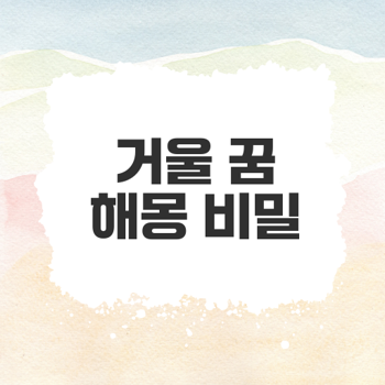 거울 꿈 해몽 10가지 의미는? 거울 꿈은 당신의 내면을 비추는 거울과도 같습니다. 꿈 속 거울은 자아 탐구에 중요한 열쇠가 될 수 있습니다. ≡ 목차 깨진 거울의 상징 .. 카테고리 없음 2025.04.27