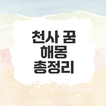 천사 꿈 해몽의 깊은 의미와 해석은 천사 꿈은 종종 신성한 메시지를 전달하며, 우리의 삶에 중요한 변화를 예고합니다. 이 글에서는 다양한 천사 꿈 해몽을 통해 의미를 알아보겠습니다. ≡ 목차 천사와의 상징적인 만남 .. 카테고리 없음 2025.06.01