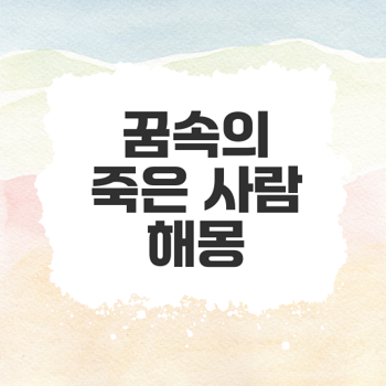 죽는 꿈 해몽 의미와 해석은? 죽는 꿈은 불길한 예감일까요? 아니면 새 출발의 상징일까요? 지금 바로 꿈의 이면을 들여다보세요. ≡ 목차 죽는 꿈의 상징적인 의미 .. 카테고리 없음 2025.05.31